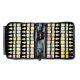 Dropper bottles are alphabetically organised for ease of choosing. Wallet includes a section to hold your business cards and side handles that ensure the user can hold the kit as well as place it in a bag.