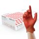 Red, vinyl examination gloves